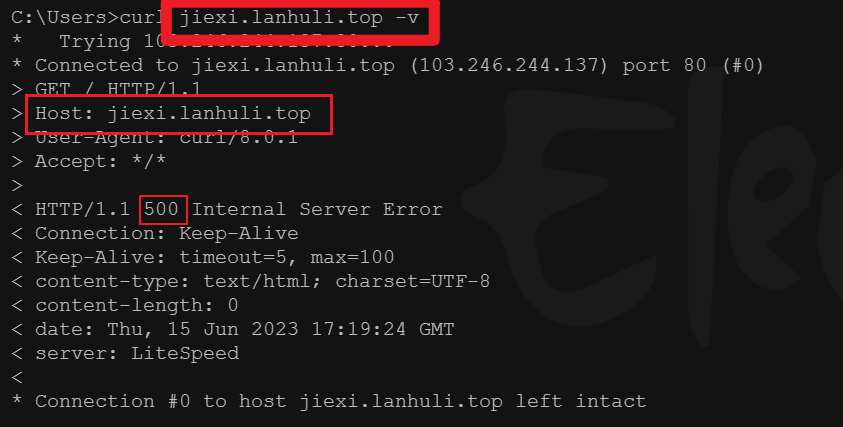 先访问 jiexi.lanhuli.top,返回 500。因为服务器上压根就没有这个站点,所以服务器根据 host 访问会失败。