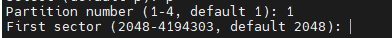 之后选择该分区的起始磁盘数,这里可自定义也可不做选择,如无特殊需求强烈建议选择默认,直接回车