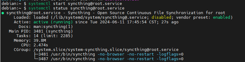 systemctl start syncthing@username.service # 将 username 替换为您的实际用户名。