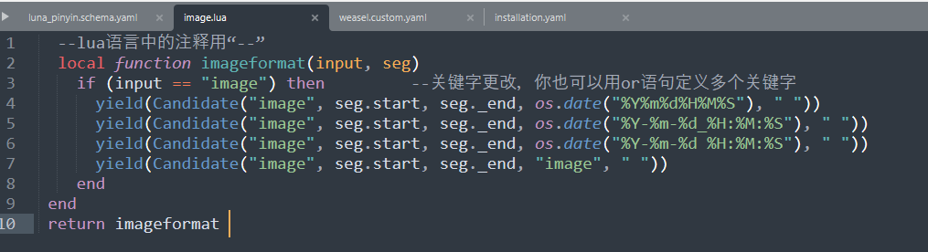 2)首先在 rime.lua 文件里面,添加这样一句代码:image_format = require("image")