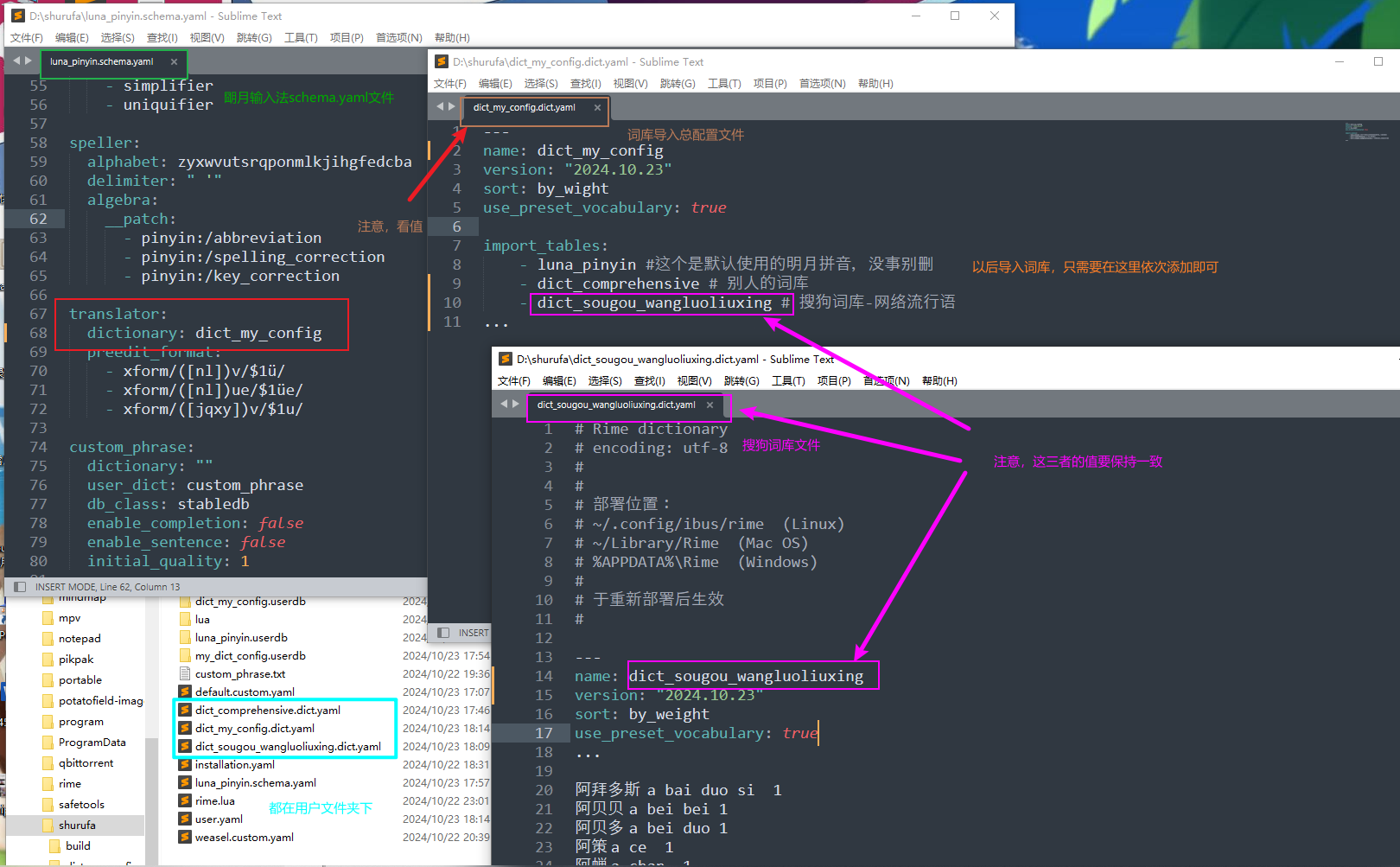dict_my_config.dict.yaml 是导入词库的总配置文件。