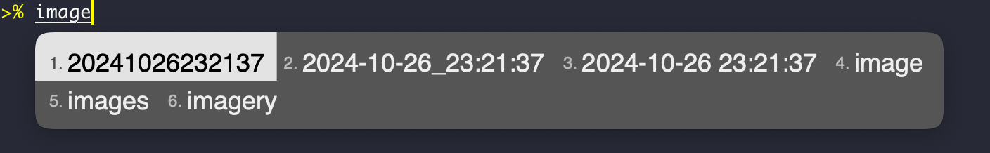 效果:输入 image。自定义的时间格式在前,同时雾凇自带的词排在后面。