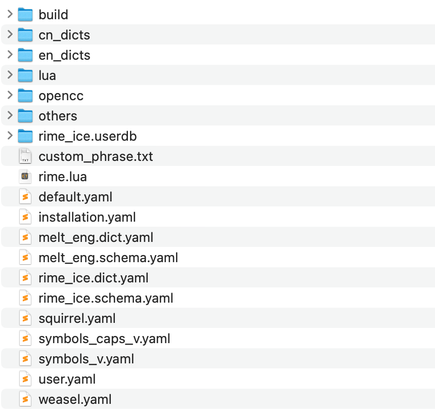 自己折腾了一段时间后,发现还是使用集成方案更好,我这里使用了雾凇拼音输入方案,同时利用坚果云进行同步词库配置,然后 Windows 端使用小狼毫,Mac 端使用鼠须管,安卓端使用小企鹅。总体上就是这样了,不想过多的将时间浪费在这上面了。