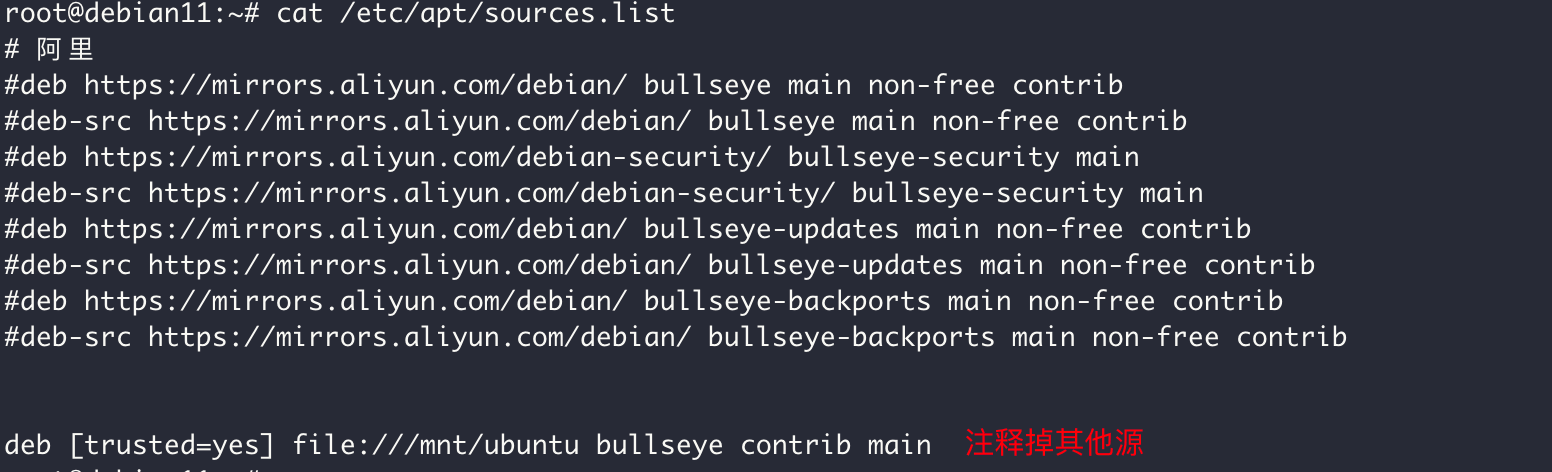 3)修改本地主机的 /etc/apt/sources.list 文件,注释掉其他源