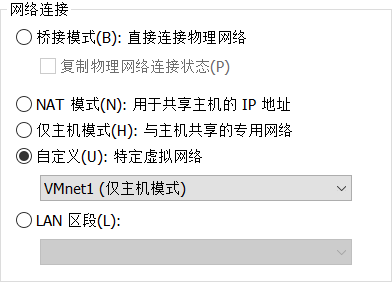 1、将两台虚拟机的网络连接方式改为:VMnet1