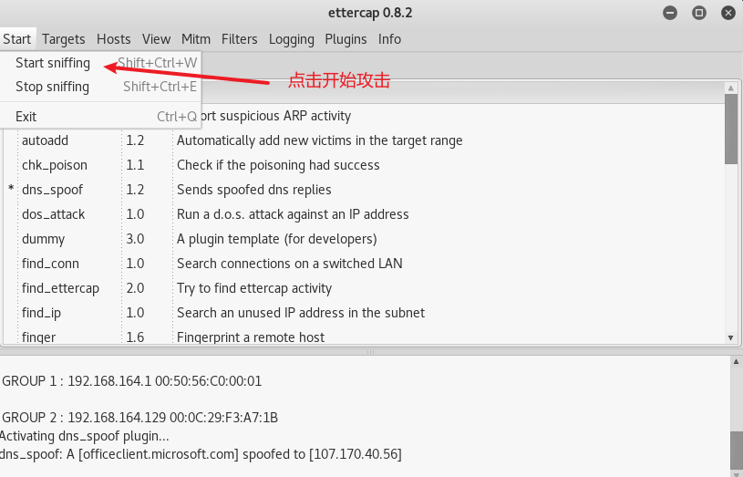 编辑:vim /etc/ettercap/etter.dns,添加新的记录