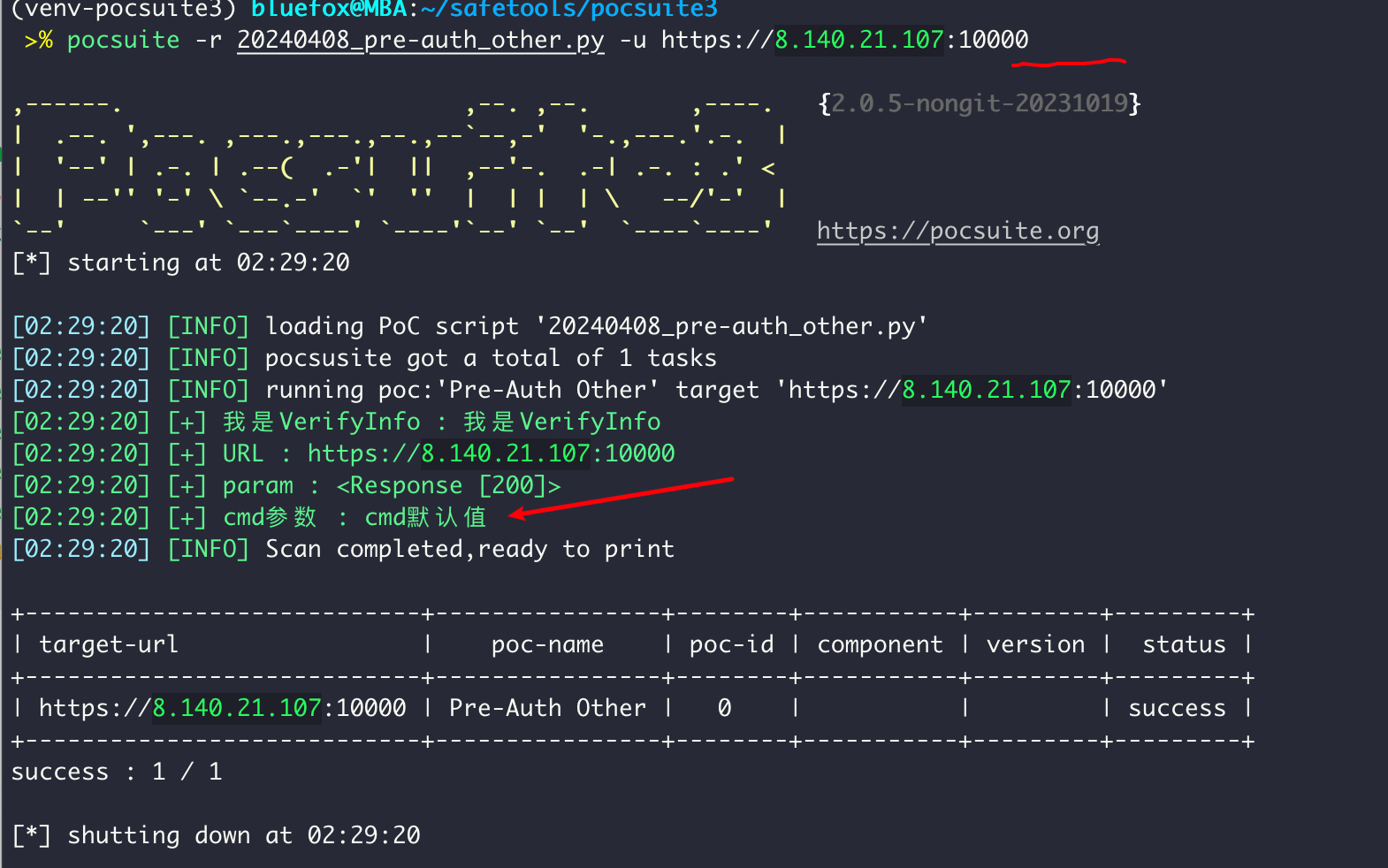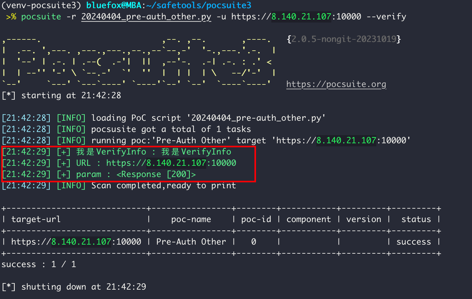 --verify:验证模式,执行 PoC 脚本的 _verify() 方法,进行漏洞验证。默认模式
