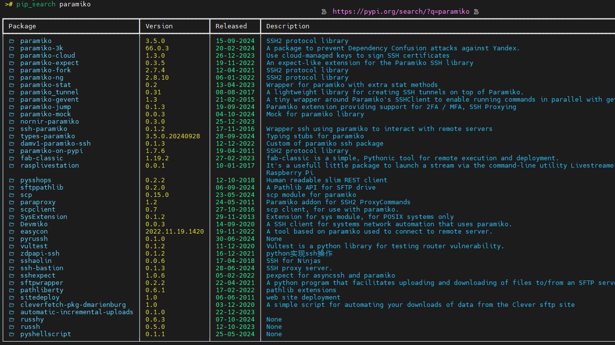 RuntimeError: PyPI no longer supports 'pip search' (or XML-RPC search). Please use https://pypi.org/search (via a browser) instead. See https://warehouse.pypa.io/api-reference/xml-rpc.html#deprecated-methods for more information