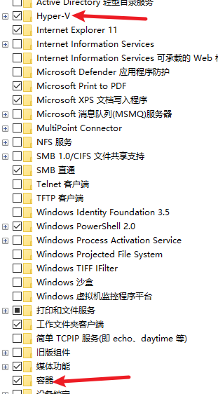 启用Hyper-V进行安装:在控制面板—启用或关闭 Windows 功能,勾选Hyper-V和容器两个选项,两个都要,不然报错。然后重启,双击 exe 文件。