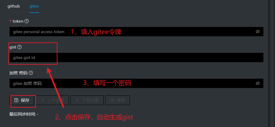 设置信息保存在 gitee 的代码片段当中,用加密密码加密保存: https://gitee.com/dashboard/codes
