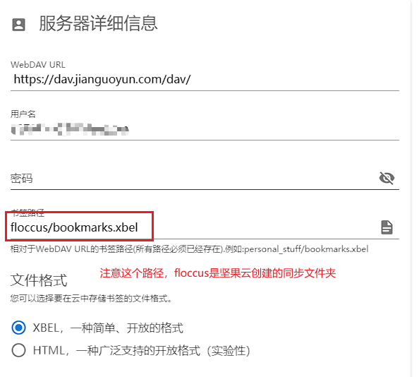 Floccus:浏览器安装 Floccus 扩展 floccuf下载地址,打开 Floocus 选择新建账户,书签路径写自己 新建的文件夹/bookmarks.xbel 接下来点击保存即可